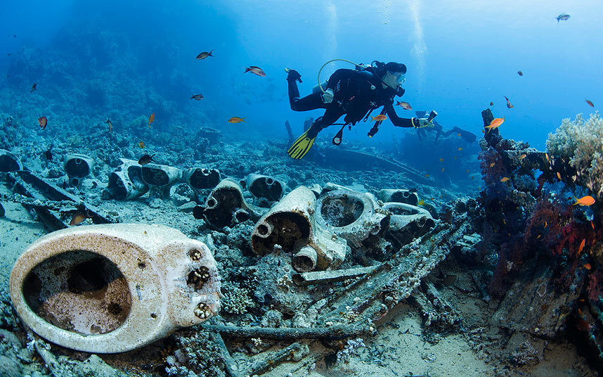 Thistlegorm is another shipwreck that also went down in the Egyptian Red Sea. Built in 1940, the SS Thistlegorm was a British armed Merchant Navy ship used during WW2 to transport various war supplies. She was sunk on October 6, 1941 by a German Air Attack. This shipwreck contains many war supplies such as locomotives, tanks, trucks, Jeeps, motorbikes, boots, and stacks of rifles and makes you feel as if you’re diving back in history!